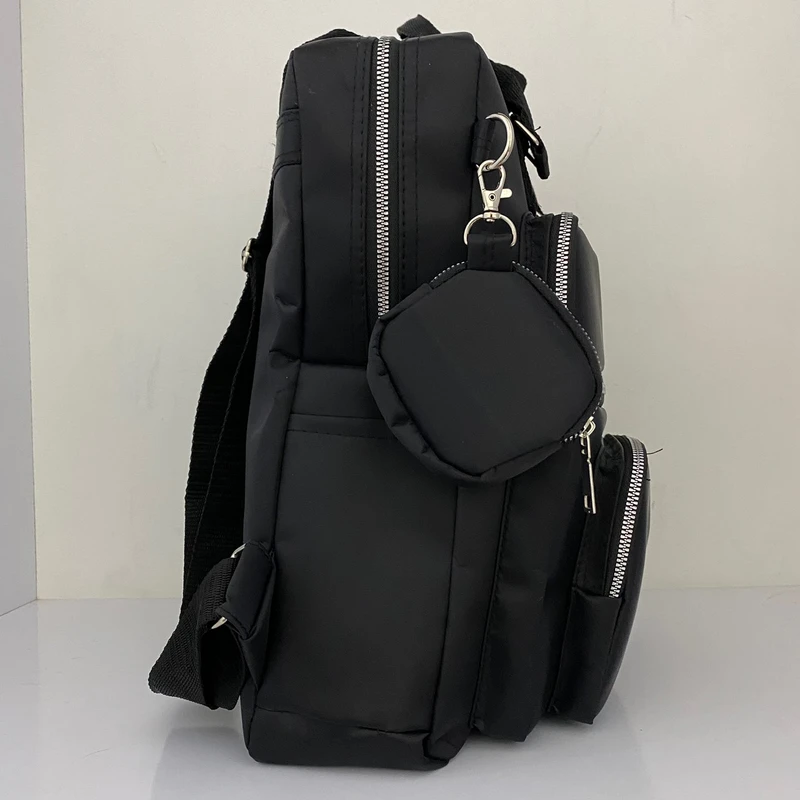ابعاد این کوله ۳۷ در ۳۰ در ۱۷ سانتی متر است. جنس کوله برزنت درجه یک (نانسی) و آستر آن خارجی است. این کوله آستردوزی و دوردوزی شده است و با نهایت دقت و ظرافت طراحی و دوخته شده است. این کوله ضد آب و دارای دو دسته و دو بند دوشی کوله شو است که هم میتوان به عنوان کیف دستی و هم به عنوان کوله از آن استفاده نمود. زیپ های این محصول درشت و محکم و روان است و همچنین پارچه ، یراق آلات و سایر متریال به کار رفته در این کیف از کیفیت ممتازی برخوردار هستند به گونه ای که کیف در حالت خالی هم از ایستایی خوبی برخوردار است. این کوله دارای ۵ زیپ و یک کیف کوچک زیپ دار آویز است و همچنین دارای دو جیب در اطراف کوله میباشد. این کوله پشتی برای مقاطع دانشجویی، متوسطه دوم، سفر و استفاده روزمره مناسب است.