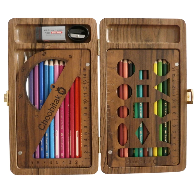 بسته لوازم التحریر چوبی تک مدل 1398 مجموعه 29 عددی